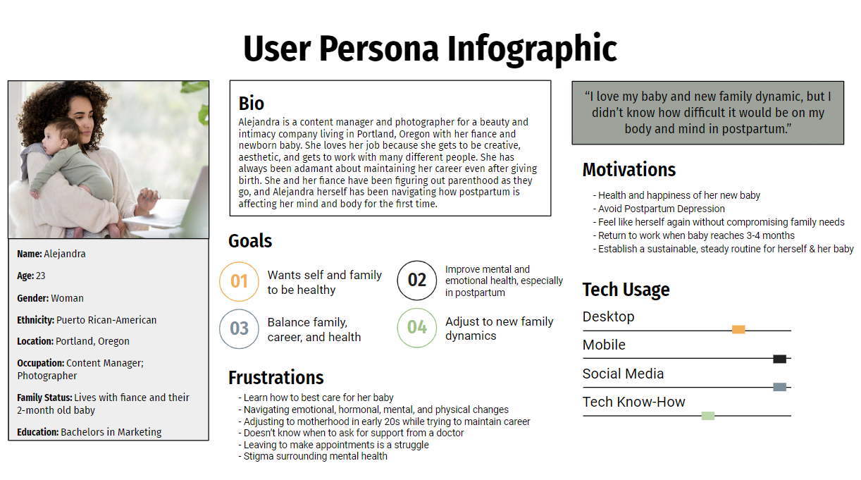Through the combination of user research and behavioral data gathered, I created two user personas to help illustrate the real-life needs, goals, and pain points associated with the target audience's experiences with wellness apps. Meet Alejandra and Malakai!