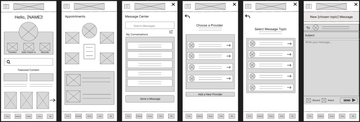 All 6 participants defaulted to randomly clicking around the app in order to find the feature, which they eventually found by exhausting their options. 4 out of 6 participants reported not even realizing that messaging their healthcare team was even a feature offered.
