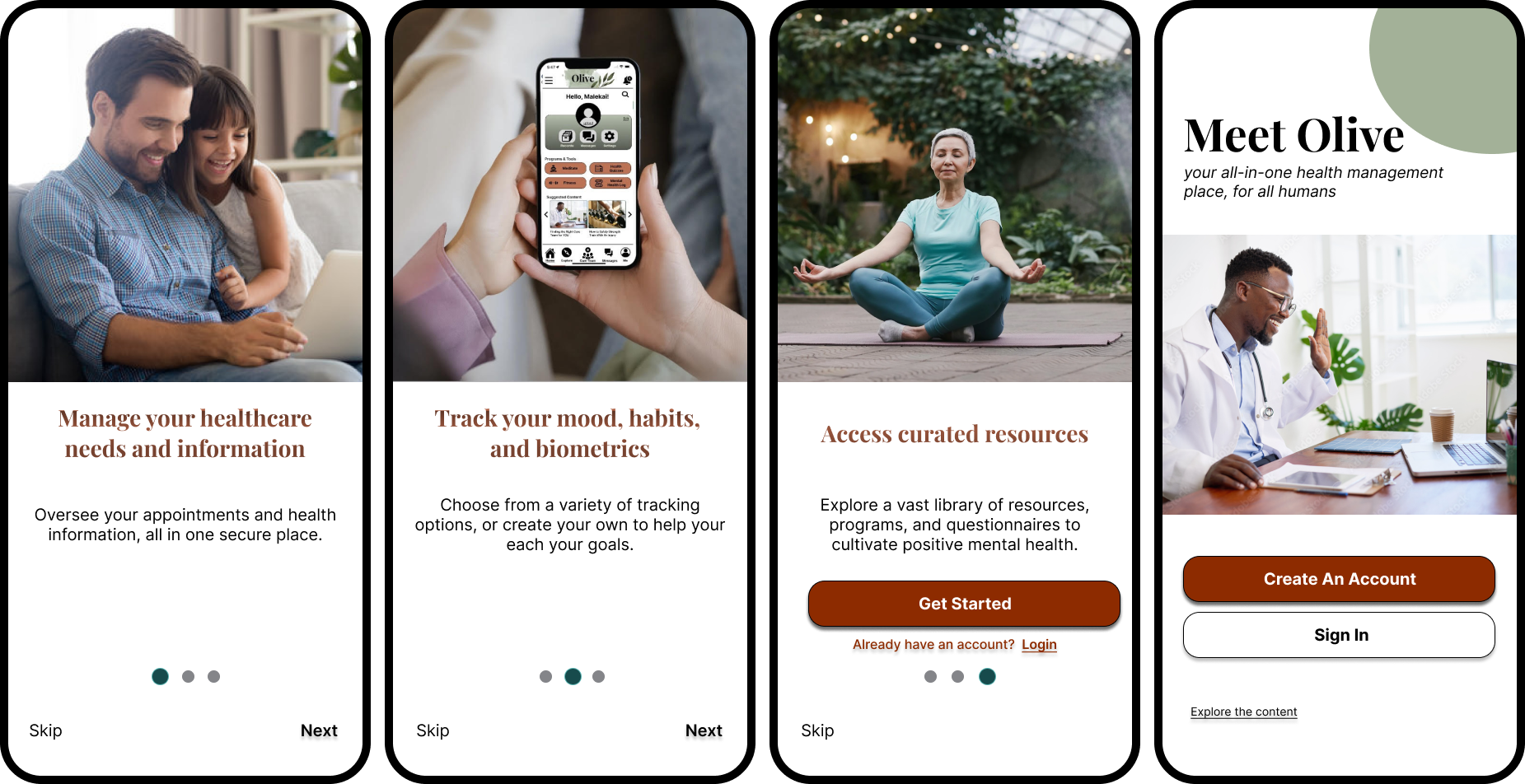 Olive was designed to offer the reliability and convenience of health information storage and healthcare management, as well as curated resources for individual needs and goals —including habit trackers, health questionnaires, and programs.