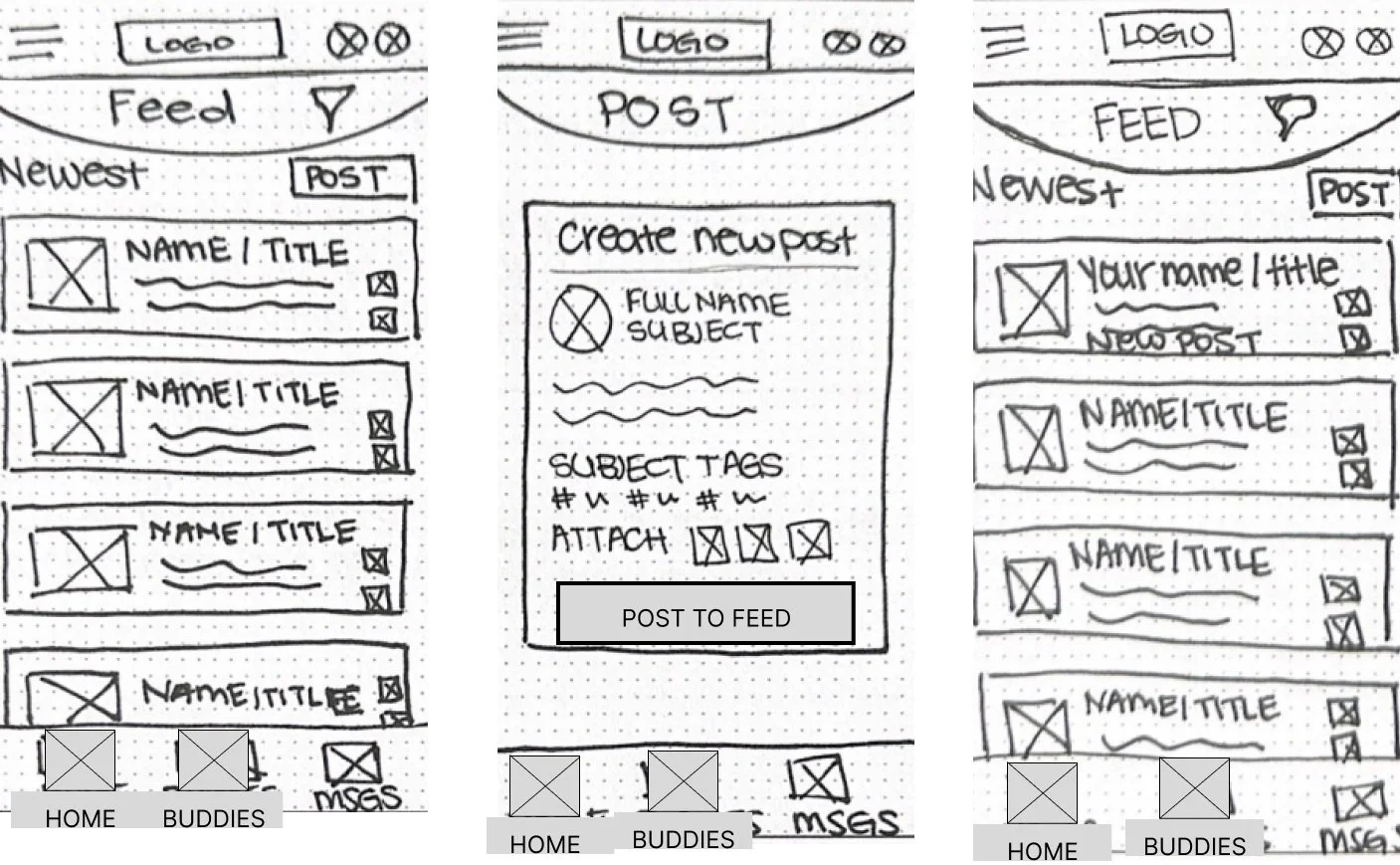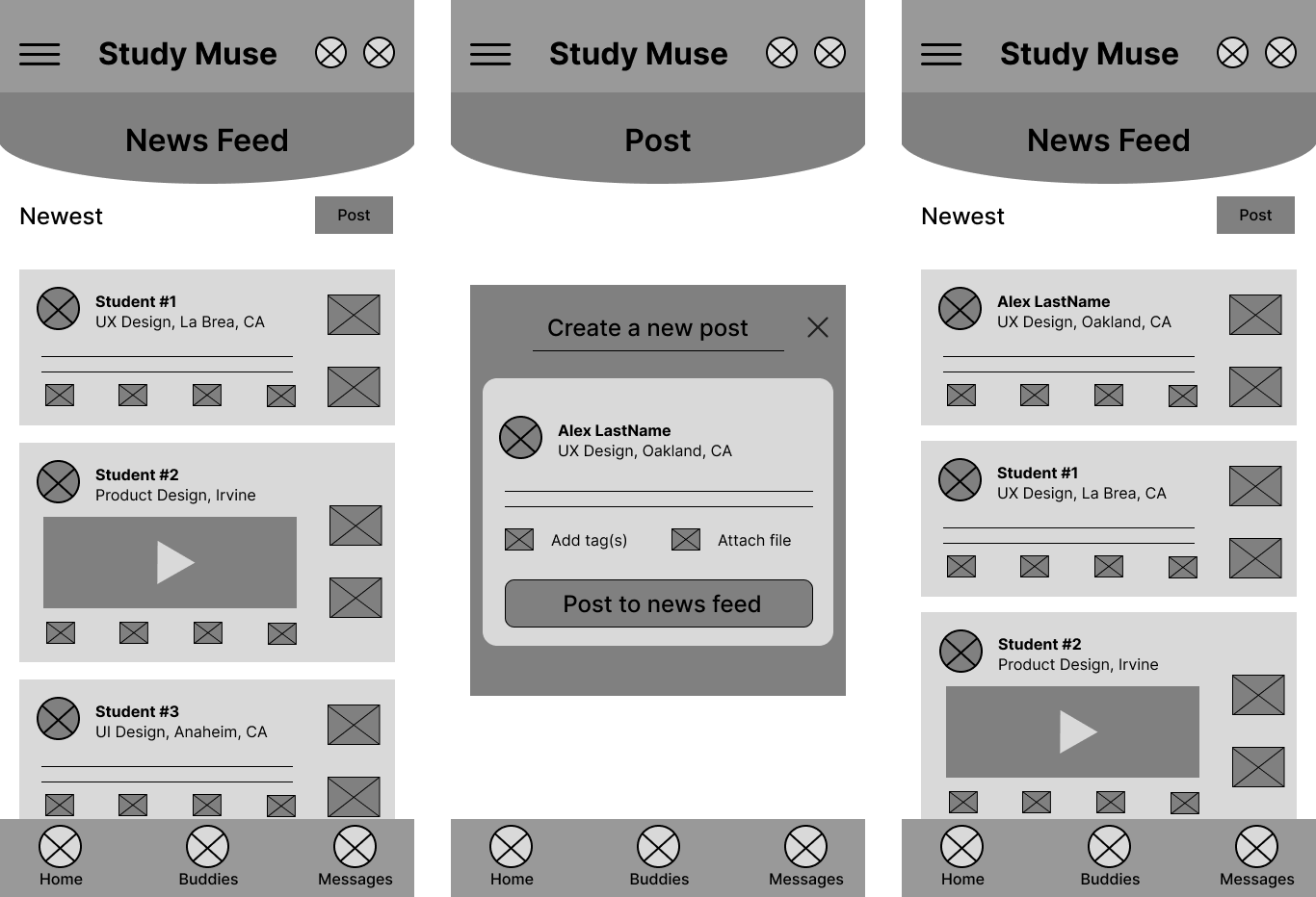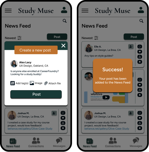 Key Functionalities: Students will be able to view and share study materials, tips, feedback, and resources related to their field of study through a community news feed. Students can find and form connections with other like-minded students with direct messaging and post interactions.